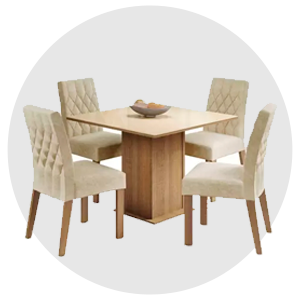 Conjunto Mesa de Jantar Off White Dubai 1,35m MDF com 4 Cadeiras Castanho / Areia