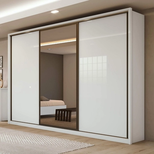 Guarda-Roupa Casal 3 portas Correr Spazio 6 gavetas Branco Expresso Móveis.