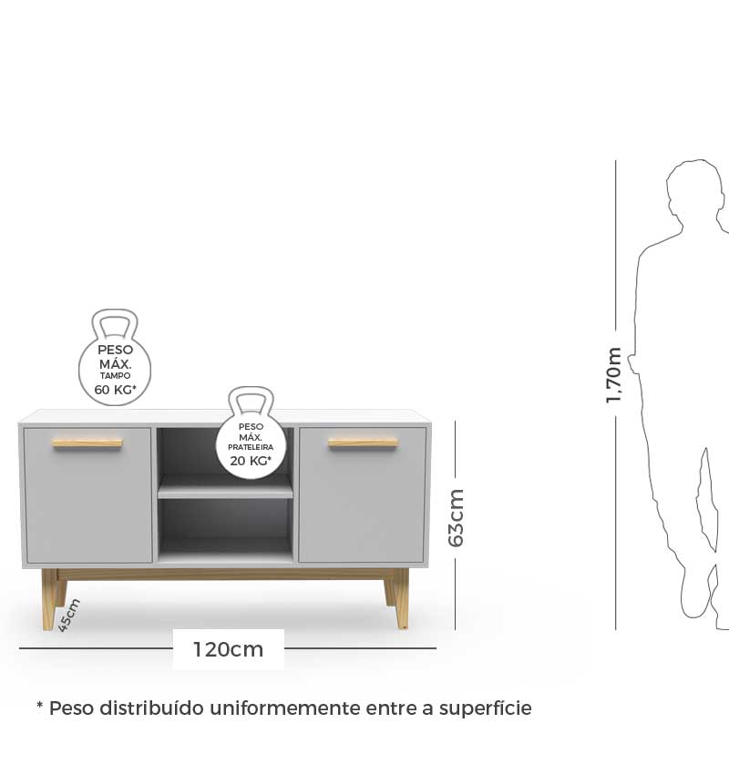 Dimensão 120 x 63 x 45cm (largura x altura x profundidade).